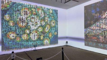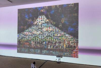 令和6年度に府立支援学校に在籍していた幼児児童生徒の作品を素材にして作りあげた複数のモザイクアートが、会場に映し出されており、素敵なBGMと合わさって、幻想的な空間が広がっていました。