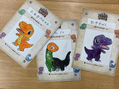 図工で塗り絵したオリジナル恐竜が、当日スクリーンに投影されるそうです!