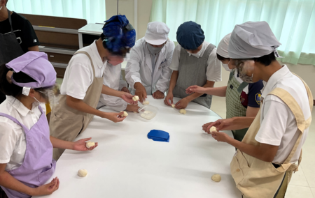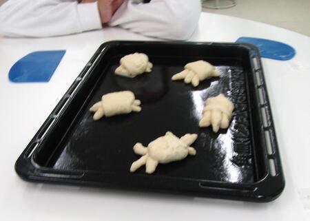 講師の先生の説明を聞いてから、ミニコッペパンや好きな形のパンを2個ずつ作りました。