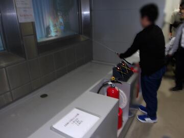 「初期消火体験」は、本校の火災避難訓練時にも実施したことがあり、使用の手順などを覚えている生徒が多くいました。