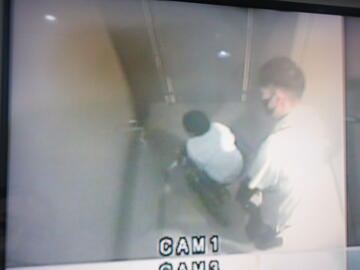「煙避難体験」では、無害な煙が充満しているいくつかの部屋を、誘導灯を見ながら非難する体験をしました。しっかり口にタオルを当てて非難することができました。