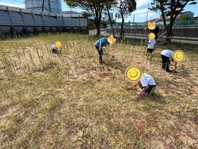 1年生から6年生まで、みんなが授業や中庭あそびのときに草を抜いてくれて...