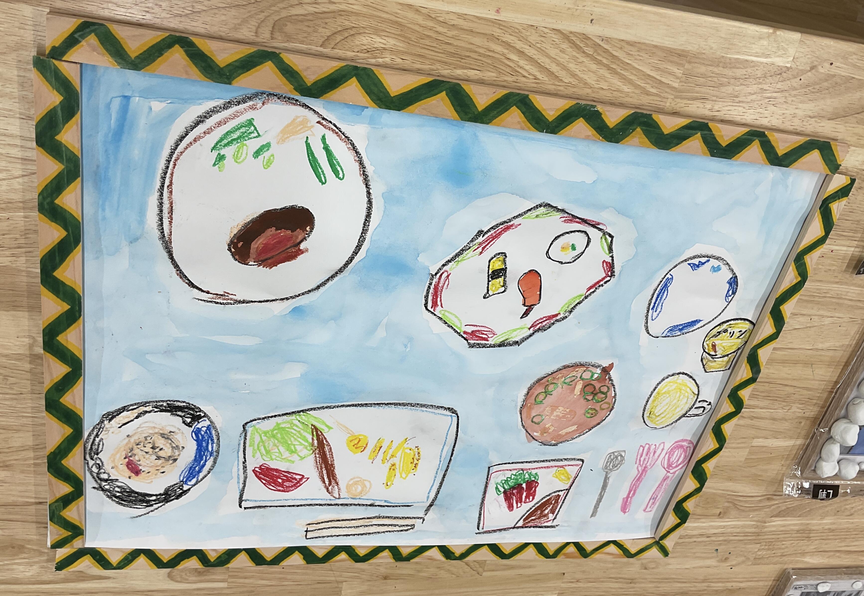 額縁の素敵な模様も自分たちで考えて工夫して塗ったものです!