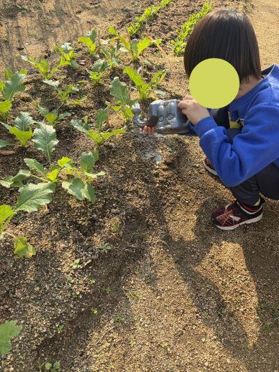 教室からは少し遠い場所にある畑に向かい、それぞれ水やりをがんばってきました。