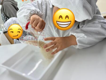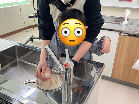 お米を計る、研ぐ、炊飯する、そして自分で握って食べることを全員が経験できました!