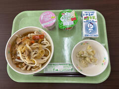 デザートは「カルシウムヨーグルト」と「ももゼリー」でした。みなさんはどのデザートを選びましたか?ちなみに校長先生と栄養教諭の寺中先生は「カルシウムヨーグルト」を選びました。