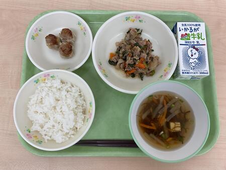 10月15日 | 水 | ごはん、とりにくのしょうがいため、てづくりこまつなふりかけ、さわにわん、ぎゅうにゅう |