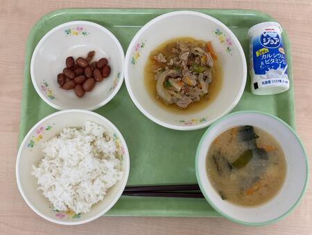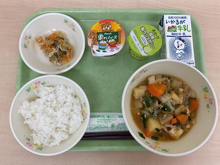 10月21日.jpg | 火 | ごはん、ぶたにくのしょうがやき、きんときまめのにもの、じゃがいもとあつあげのみそしる、ジョア |