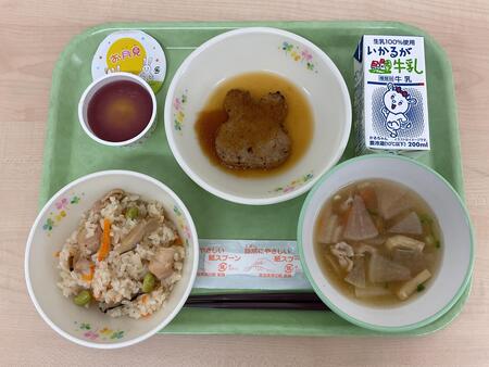10月24日 | 金 | とりごぼうめし(セルフまぜごはん)、あじのみりんやき、はくさいのすましじる、ぎゅうにゅう |