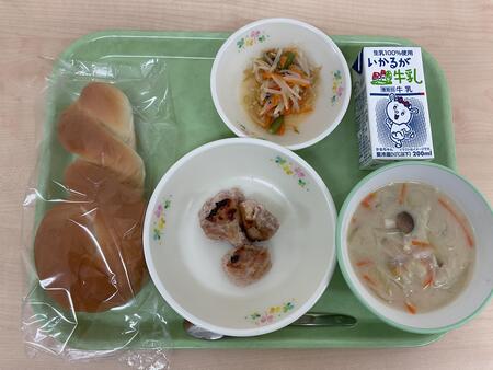10月30日 | 木 | おさつパン、ポークシチュー、つぶマスタードサラダ、ぎゅうにゅう |