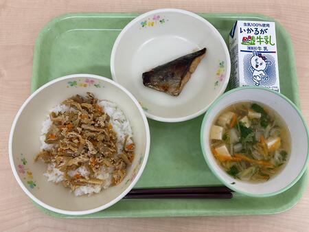 | 10月29日 | 水 | ごはん、さばのしょうゆだれかけ、かきなます、はくさいととうふのみそしる、ぎゅうにゅう |