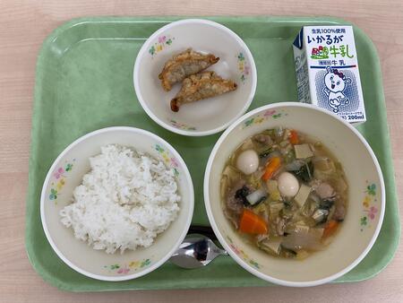 | 10月28日.jpg | 火 | ごはん、はっぽうさい、あげぎょうざ、ぎゅうにゅう |