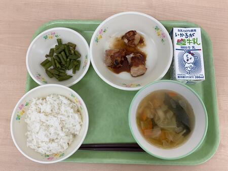 | 10月14日.jpg | 火 | ごはん、さかなのたつたあげ、きりぼしだいこんのいために、かぼちゃのみそしる、ぎゅうにゅう |