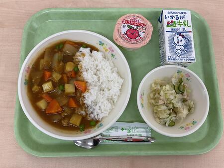| 11月10日.jpg | 月 | チキンカレーライス、グリーンサラダ、ふじりんごゼリー、ぎゅうにゅう |