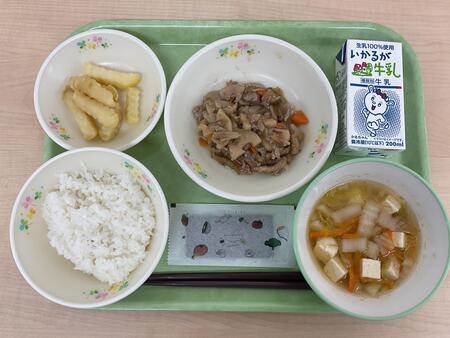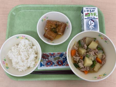 | 11月26日.jpg | 水 | ごはん、ぶたじゃが、あつあげのしょうがじょうゆかけ、ミャクミャクあじつけのり、ぎゅうにゅう |
