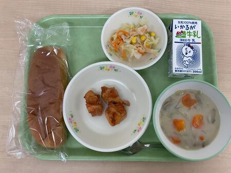 | 11月27日.jpg | 木 | おさつパン、とりにくのパプリカふうみやき、コールスローサラダ、ごぼうのクリームスープ、ぎゅうにゅう |