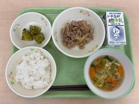 | 11月11日.jpg | 火 | ごはん、ぶたにくのごまみそいため、やきさつまいも、チンゲンサイとたまごのスープ、ぎゅうにゅう |