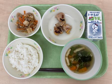 | 11月14日.jpg | 金 | ごはん、とりにくのマーマレードやき、とうふチャンプルー、わかめとみずなのすましじる、ぎゅうにゅう |