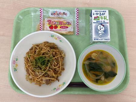 | 11月19日.jpg | 水 | ソースやきそば、やさいととりにくのスープ、いちごクレープ、ぎゅうにゅう |