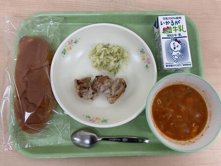| 11月20日.jpg | 木 | アップルパン、とりにくのレモンバジルやき、キャベツソテー、ミネステローネ、ぎゅうにゅう |