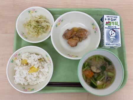 | 11月5日.jpg | 水 | くりごはん、とりにくのゆうあんやき、たくあんのごまあえ、なすのみそしる、ぎゅうにゅう |