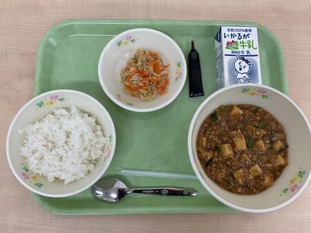 | 11月4日.jpg | 火 | ごはん、マーボーどうふ、ささみとキャベツのばいにくあえ、ミルメークコーヒーあじ、ぎゅうにゅう |