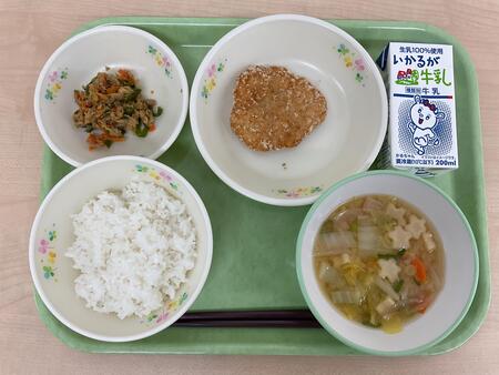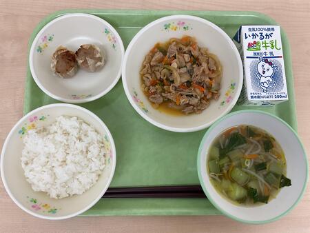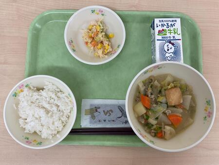 | 12月16日 | 火 | ごはん、ぶたにくのごまみそいため、さつまいものあまみつかけ、だいずのはなとわかめのすましじる、ぎゅうにゅう |
