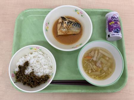 | 12月10日.jpg | 水 | ごはん、さばのみそに、てづくりこまつなふりかけ、みぞれじる、ジョア |