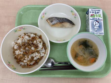 | 12月5日.jpg | 金 | とりごぼうめし、さわらのしおこうじやき、さつまいもとたまねぎのみそしる、ぎゅうにゅう *セルフまぜごはんです。 |