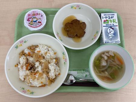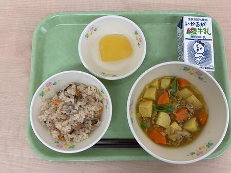 | 3月6日.jpg | 金 | たきこみごはん、ぶたじゃがカレーあじ、りんごかん、ぎゅうにゅう |
