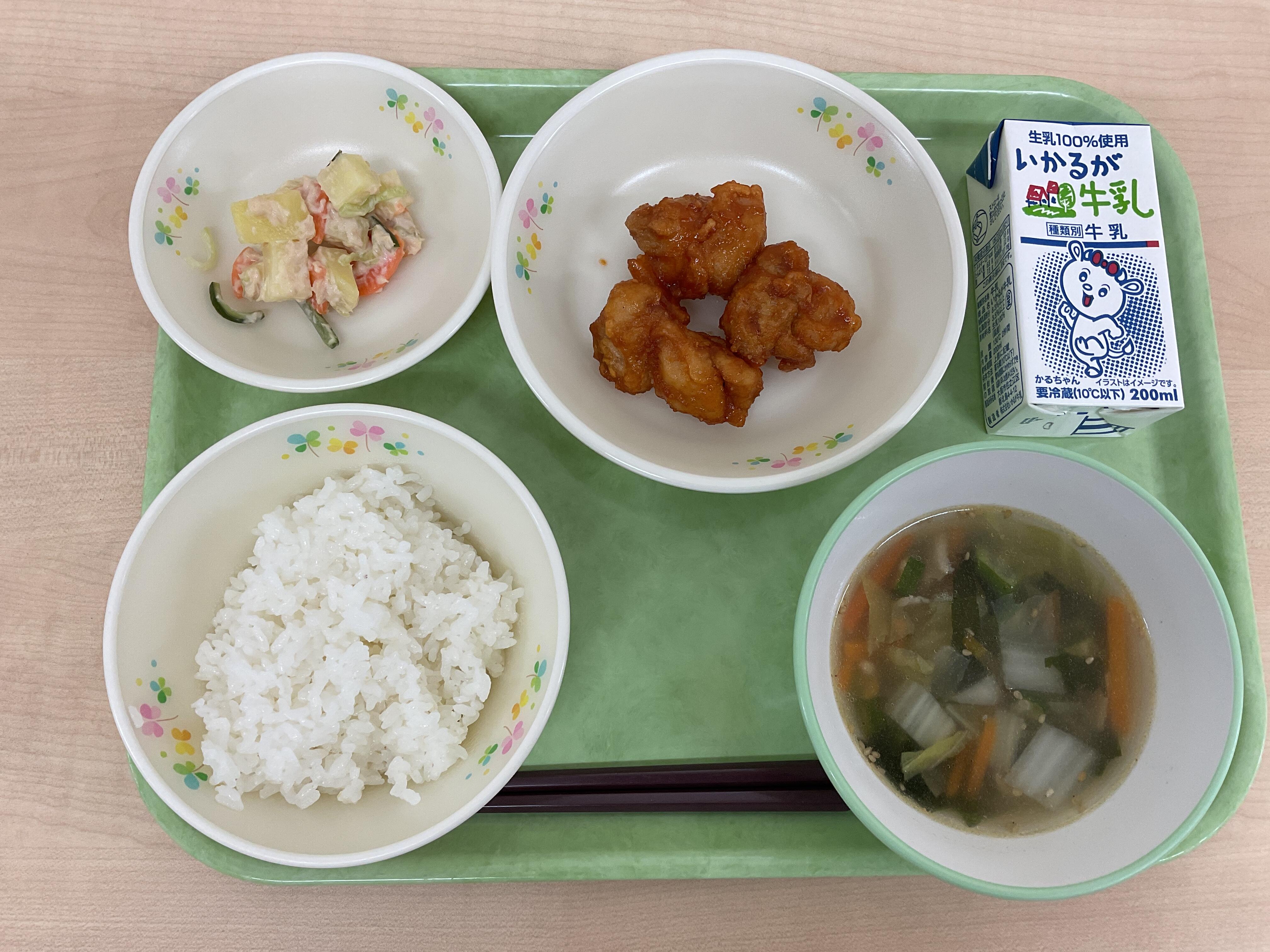 | 3月5日.jpg | 木 | ごはん、とりにくのからあげ、キャベツのしおこんぶいため、さわにわん、ぎゅうにゅう*出来島総選挙1位メニュー |