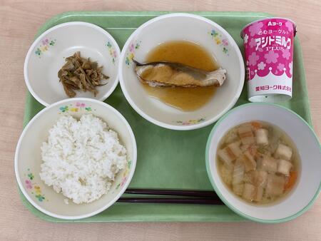 | 3月4日.jpg | 水 | ごはん、ぶりのてりやき、わかごぼうのいために、おつゆふのみそしる、アシドミルク |