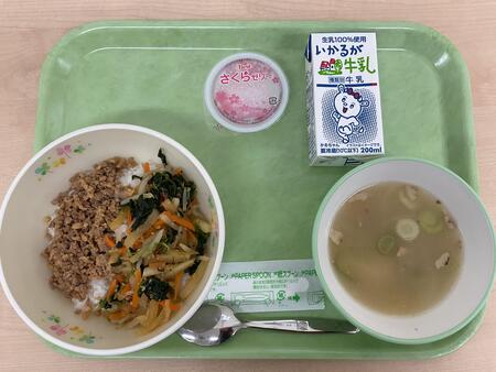 | 3月23日.jpg | 月 | ビビンバ、トックスープ、さくらゼリー、ぎゅうにゅう |