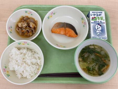 | 4月27日 | 月 | ごはん、さばのしょうがに、きりぼしだいこんのナムル、みぞれじる、ぎゅうにゅう |