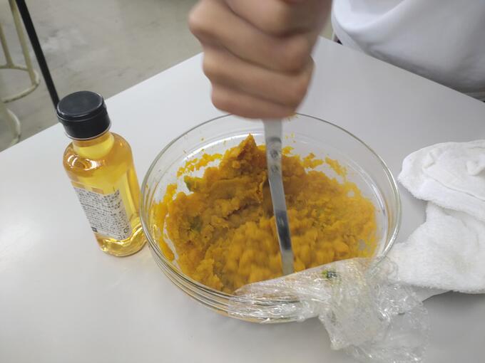 型に流し込んで...かぼちゃプリンですかね!!🍮