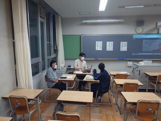 現在、"就職"や"進学"をした卒業生に来てもらい自身の体験をインタビュー方式で聞く会となっており、中にはオンラインで参加してくれている卒業生もいました。