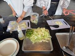 皆、協力しておいしそうな焼きそばを作れているようです。