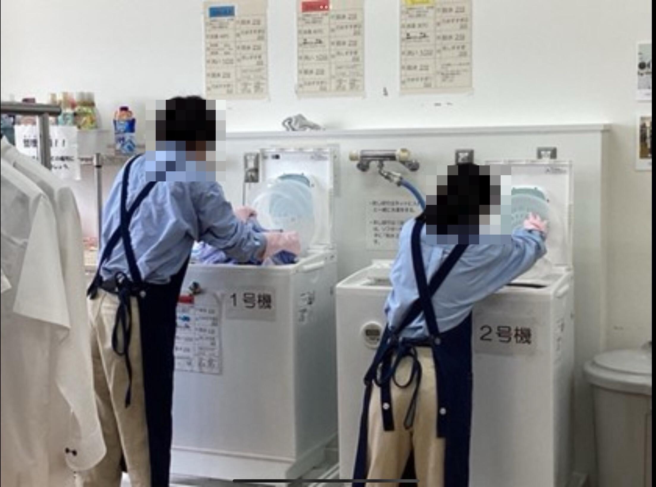 金曜日は2、3年生の合同授業があり、学年を越えて協力しながら作業を行っています。1年生もオリエンテーション期間が終わり、10月から本格的にクリーニングの作業に取り組み出しています。3学年で力を合わせてお客様からお預かりした洗濯物を綺麗にお返しできるように頑張っています。