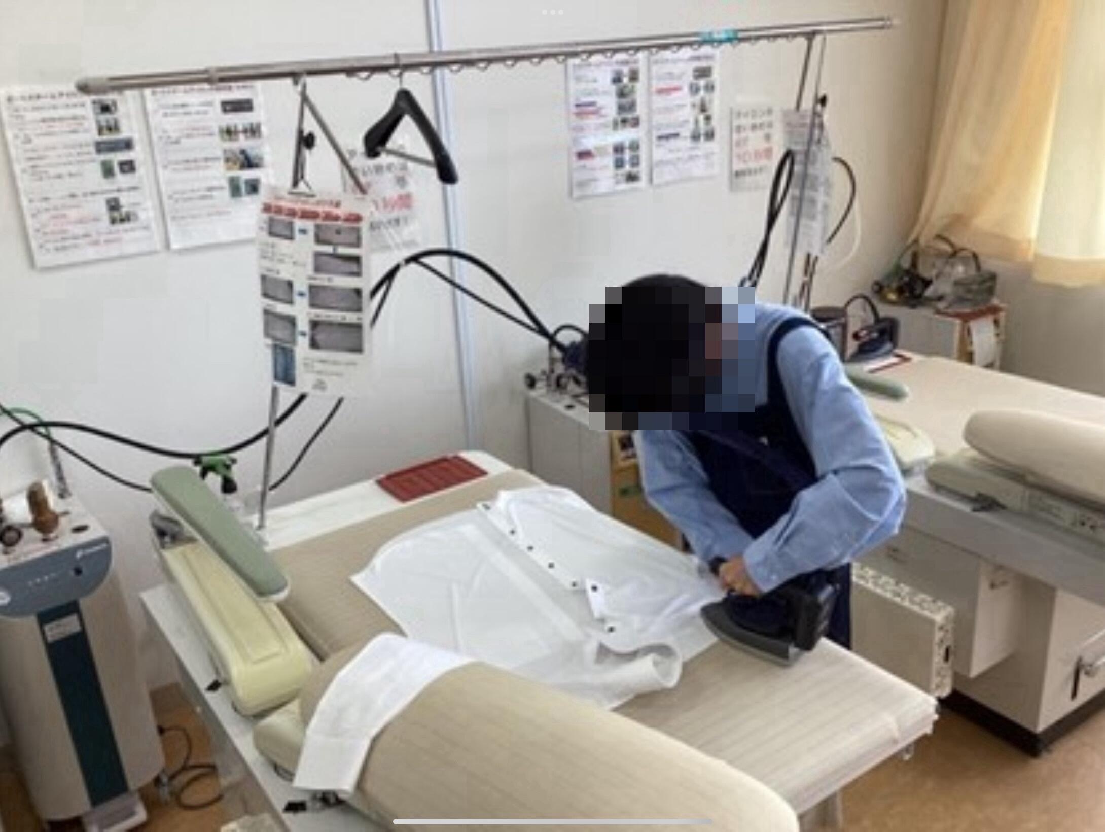 クリーニングの授業では、本校の教職員だけでなく、地域の保育園、信用金庫、自治会や神社等からも洗濯物をお預かりして作業を行っています。受付、洗濯、アイロン、たたみ、様々な作業がありますが、生徒たちはどの作業もマニュアルを見ながら、手順を守って一生懸命に取り組んでいます。利用していただいているお客様からいただく「ありがとう」の言葉がモチベーションになっています。