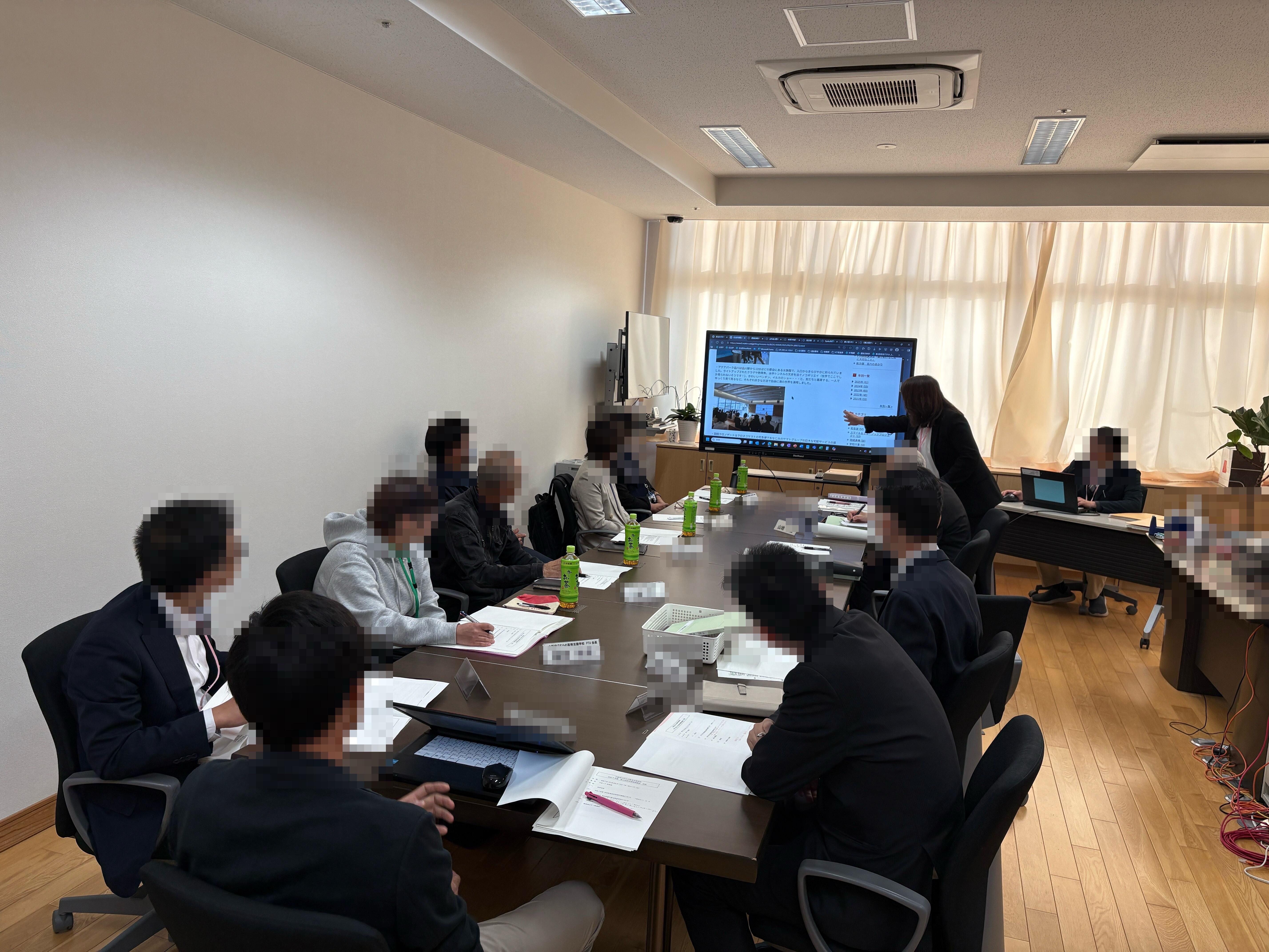 その後、学校長より令和7年度 学校経営計画の進捗状況について〈SSW(スクールソーシャルワーカー)の活用〉や〈企業による高等支援学校への相談・依頼〉、〈地域連携〉、〈高等支援学校卒業後の進路先の多様化〉など要点を絞って報告をし、共有いただきました。