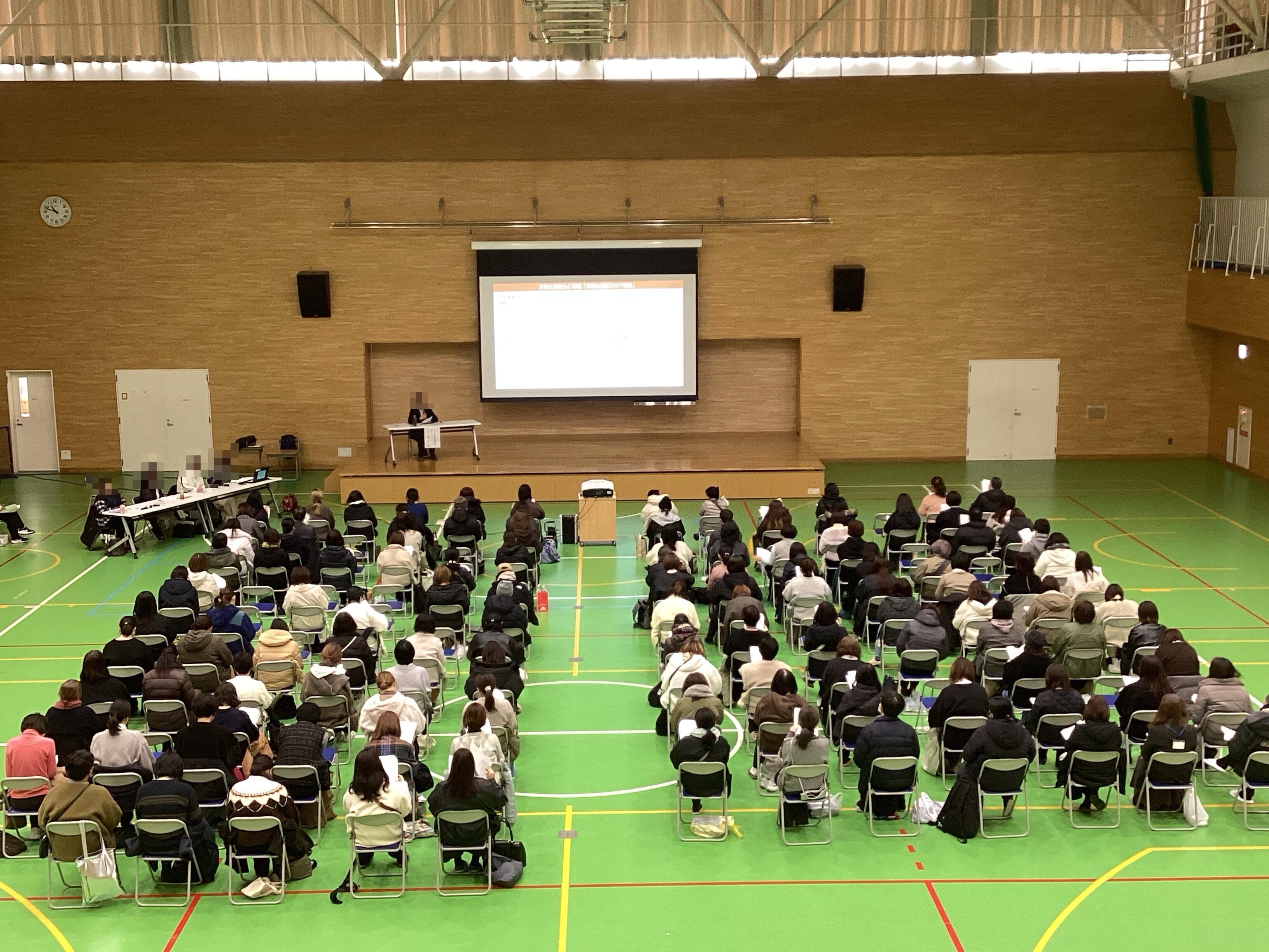 1月15日(木)にPTA保護者研修会「障がい年金について」を開催しました。秋に開催した保護者懇親会でも一番の話題になったテーマです。また今年度は、春から枚方支援学校PTAより合同開催の相談があり、例年お世話になっている震明社会保険労務士事務所の特定社会保険労務士の方に講師を依頼し、研修会の会場を体育館として総勢110名を超える規模の大きい研修会となりました。