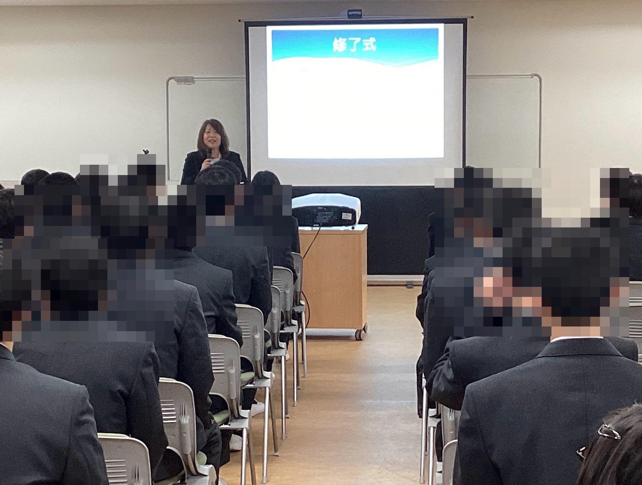 校長先生からは「卒業した9期生は、今、何をしているでしょうね⁉ 学校祭や卒業式で9期生が用いた『ありがとう』の曲が心に残っています。在校生の皆さんにも協力してもらい、3月4日は、とても良い卒業式になったことに校長先生から皆さんへ『ありがとう』の気持ちを伝えたいと思います。皆さんが取り組んでいる毎日の挨拶など、校内の雰囲気が本当に気持ちがいい。4月には新入生が来ます。新入生は、なぜ、この学校に来ようと思ったのでしょうか?おそらくオープンスクールや学校見学会での皆さんの頑張っている様子、一生懸命取り組んでいる姿を見て、来ようと思ったのではないでしょうか⁉ これも皆さんに『ありがとう』です」と、新年度に向けたお話がありました。