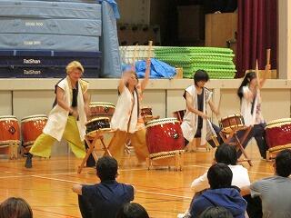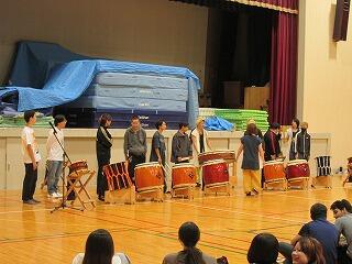 他にも、生徒が太鼓をたたく体験も行っていただきました。