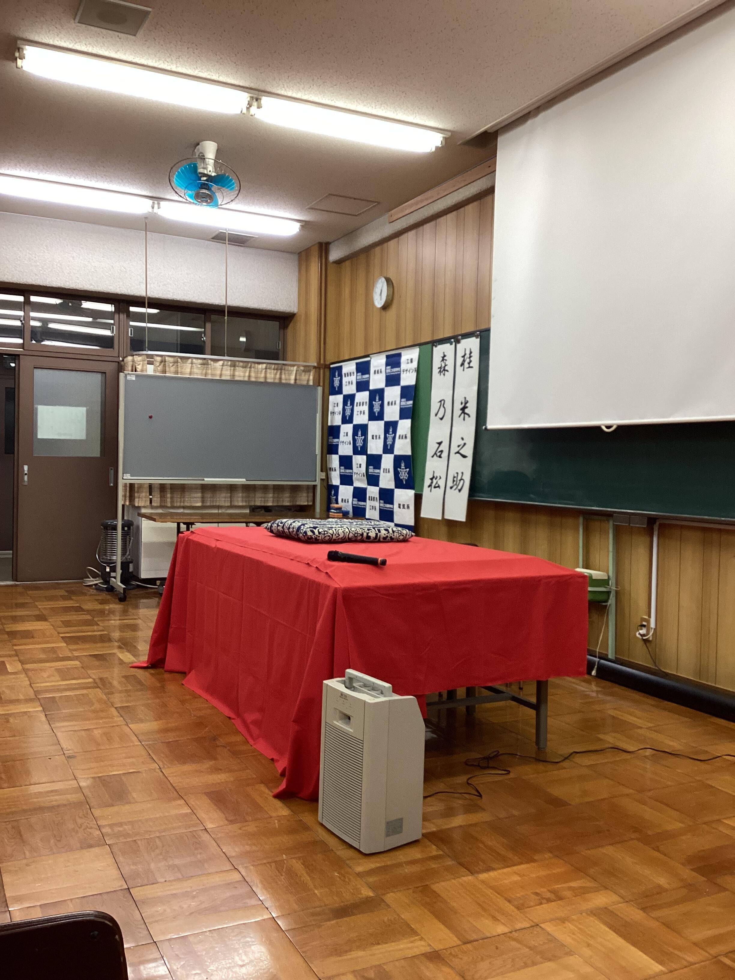 本校に落語家の 桂米之助さん、森乃石松さん をお招きし、生徒たちの前で生の落語を聞かせていただきました。先生方に考えていただいた高座も手作り感があります。👍✨