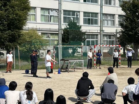 また、実際に消火器を使った体験も行い、初めて扱う生徒も真剣な表情で取り組んでいました。 今回の訓練を通して、「自分の身を守る行動」を考えるよい機会になりました。