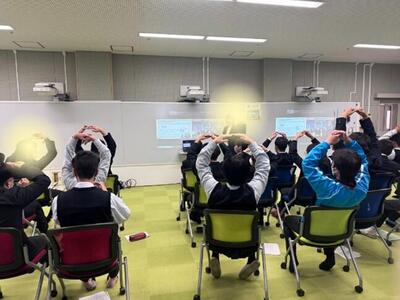 12月5日(金)、韓国の学校とのオンライン交流の第2回目を行いました。今回は、本校の3年生が日本の文化について紹介し、韓国の学校からは授業紹介や実演、そしてクイズ大会などが行われ、交流がいっそう深まりました。