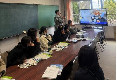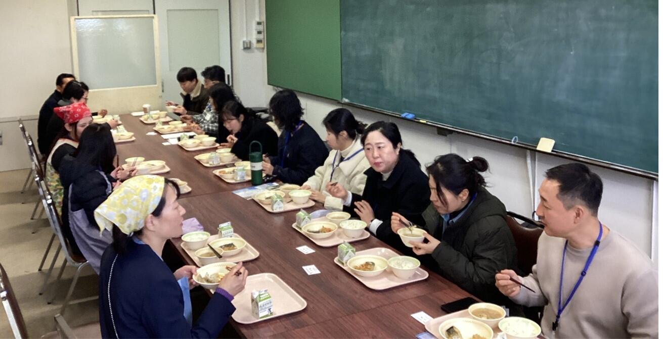 泉南支援学校の給食をいただきながら、日本と韓国の環境の違いや共通点、本校の職業教育について意見交換しました。