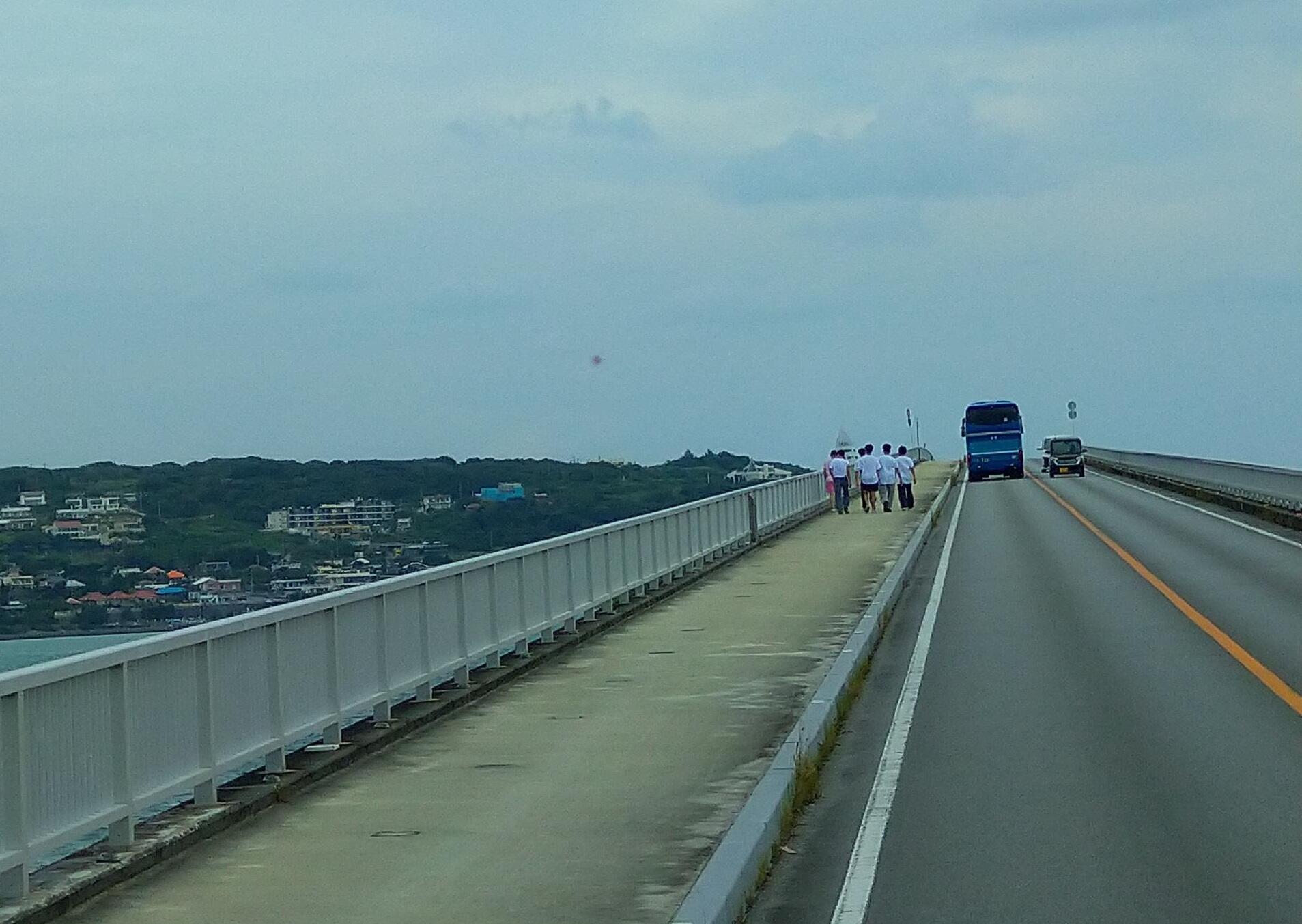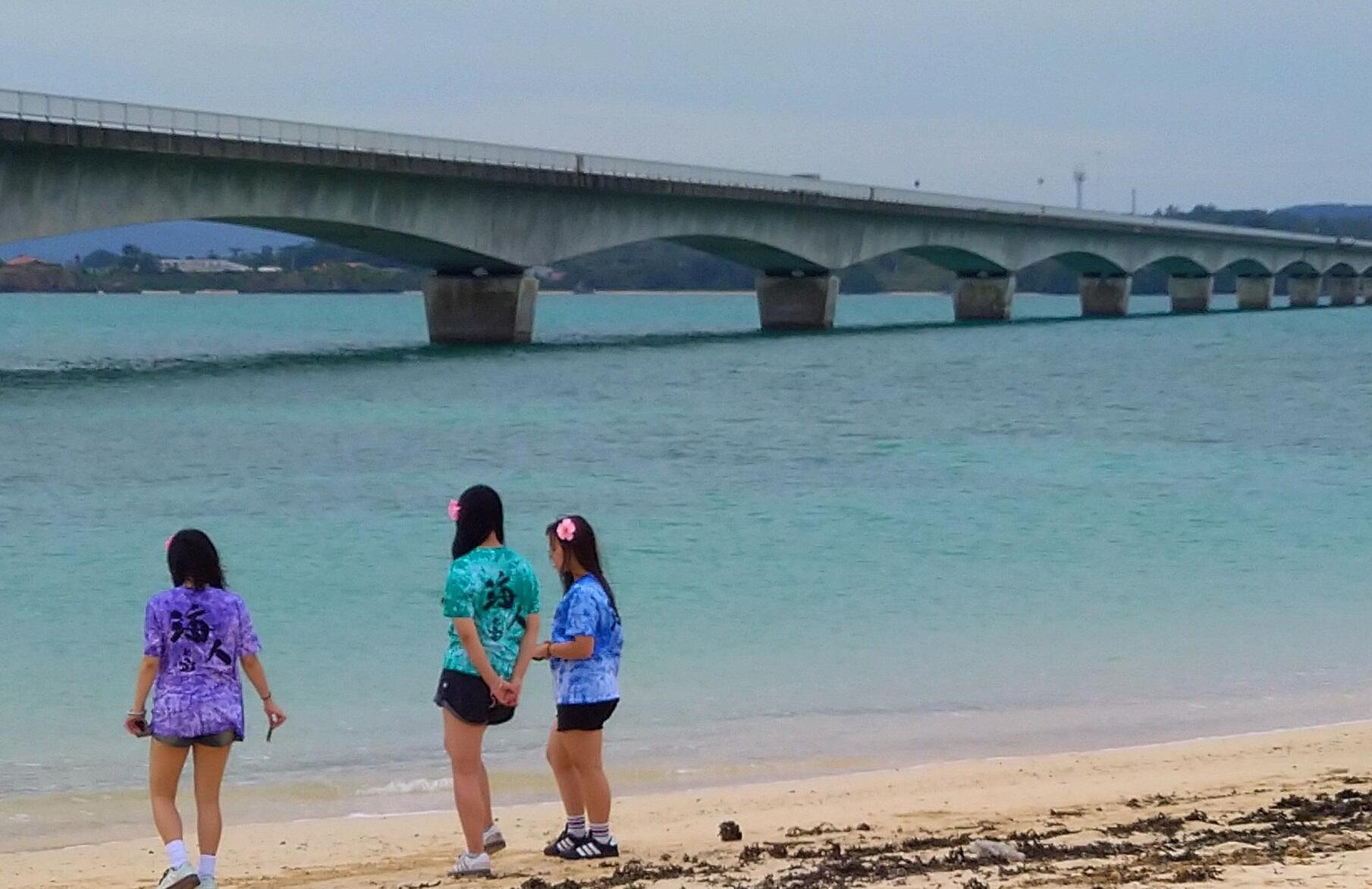 6時15分に集合、8時15分に大阪空港を出発し、10時30分に那覇空港に無事到着しました。生徒たちは楽しく語り合い、みんな元気に過ごしています。到着後、首里天楼別邸にて、沖縄そば、ゴーヤチャンプルなどの昼食をいただきました。昼食後、バスで沖縄平和祈念資料館に移動し、平和学習をしました。その後、古宇利島に移動して、入村式を行い、民泊の方と対面して各家庭へと移動しました。古宇利地区、屋我地地区、羽地地区、今帰仁地区、本部地区の5つに分かれて、2日間の生活体験(民泊)が始まります。