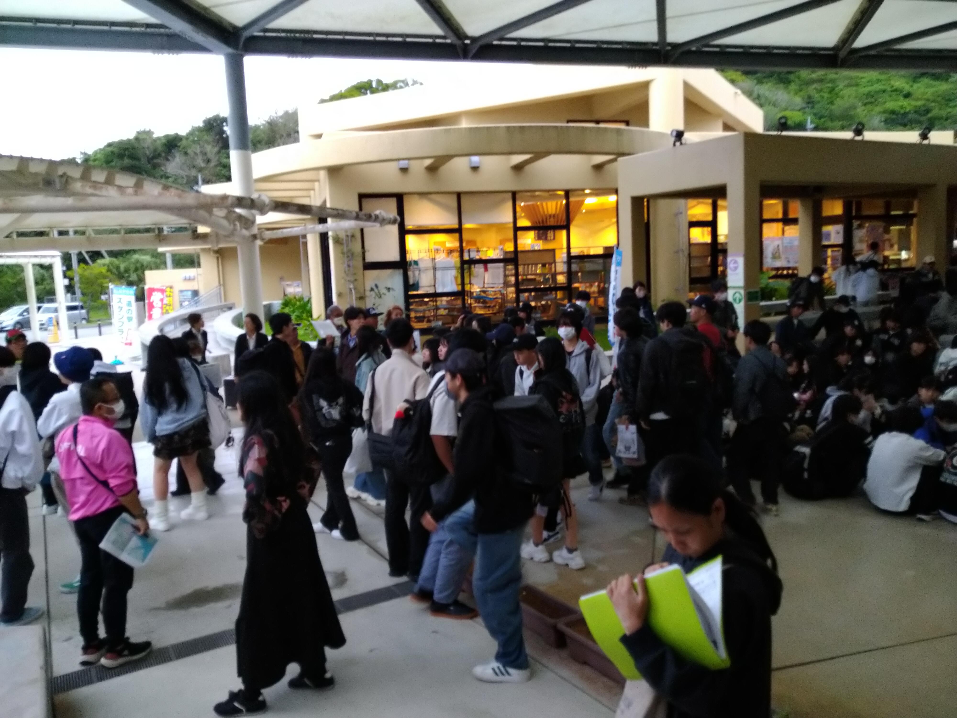 2晩お世話していただいた民家の方々に、おおぎみヤンバルの森ビジターセンターまで送っていただき、お別れまでの時間を惜しみながら、2日間の思い出話をしたり、記念撮影をしていました。