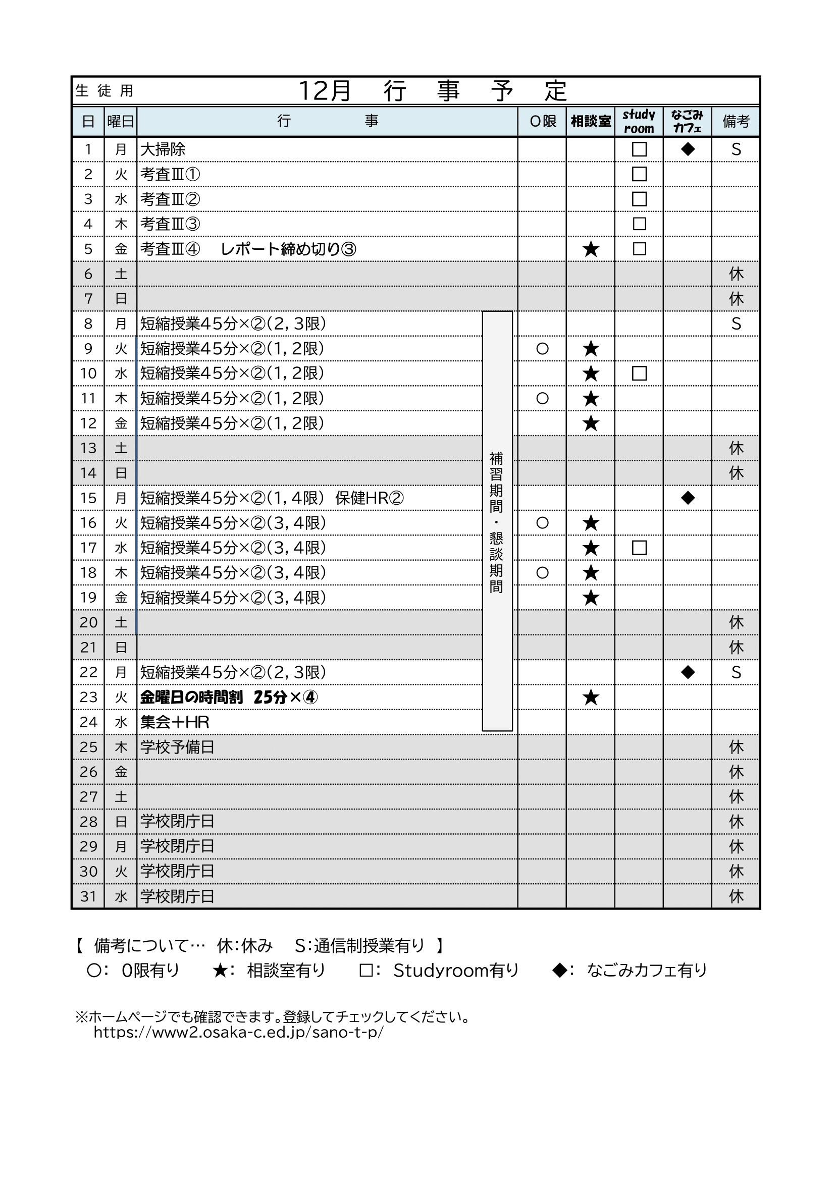 令和7年度 月間行事予定(12月)